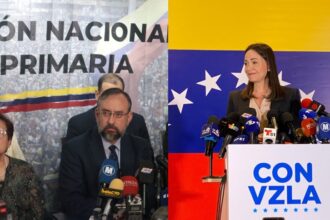 María Corina Machado, ganadora de las primarias y candidata para las presidenciales,…
