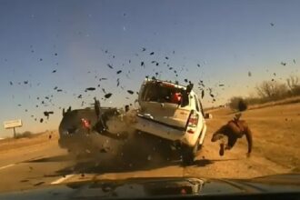 VIDEO: Policía se salvó de milagro después que una camioneta chocara contra un vehículo que detuvo y lo lanzara por el aire