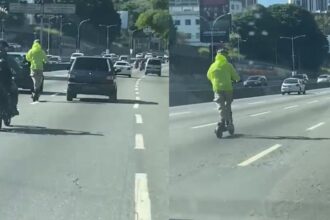 Hombre en patineta eléctrica se viralizó por burlar peligros y circular en plena autopista de Prados del Este