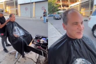 El video viral de Omar Vizquel al sorprender a un barbero ambulante en Caracas y afeitarse en la calle