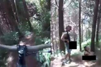 EN VIDEO l Una pareja fue pillada teniendo sexo mientras un ciclista daba un paseo por la montaña