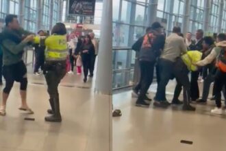 El video viral de una trifulca que terminó con puñetazos entre turista y un policía del aeropuerto de Bogotá