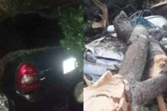 EN VIDEO: Un herido y tres carros destruidos por la caída de varios árboles en Mérida, estaban en la cola de la gasolina