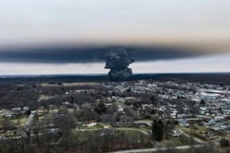Las impresionantes imágenes aéreas de la nube tóxica que mantiene en alerta a Ohio
