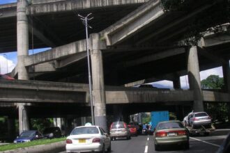 Un camión quedó colgando en el distribuidor La Araña de Caracas, sentido…