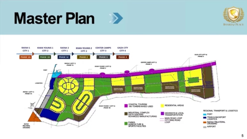 El proyecto para la Franja de Gaza busca una transformación económica con una inversión inicial de USD25.000 millones en infraestructura