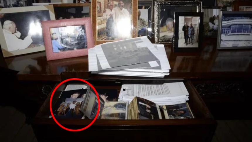 La imagen mostraba un cajón repleto de fotografías enmarcadas del millonario junto a figuras como el papa Juan Pablo II, celebridades y líderes políticos.