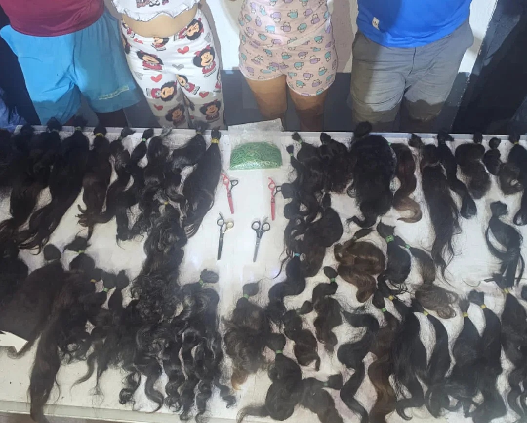 Durante el procedimiento, las autoridades incautaron 52 moños de cabello, cuatro tijeras, dos cintas métricas, una bolsa de cabello color verde y cuatro celulares. También incautaron las tres motos con las que se desplazaban los miembros de la banda.