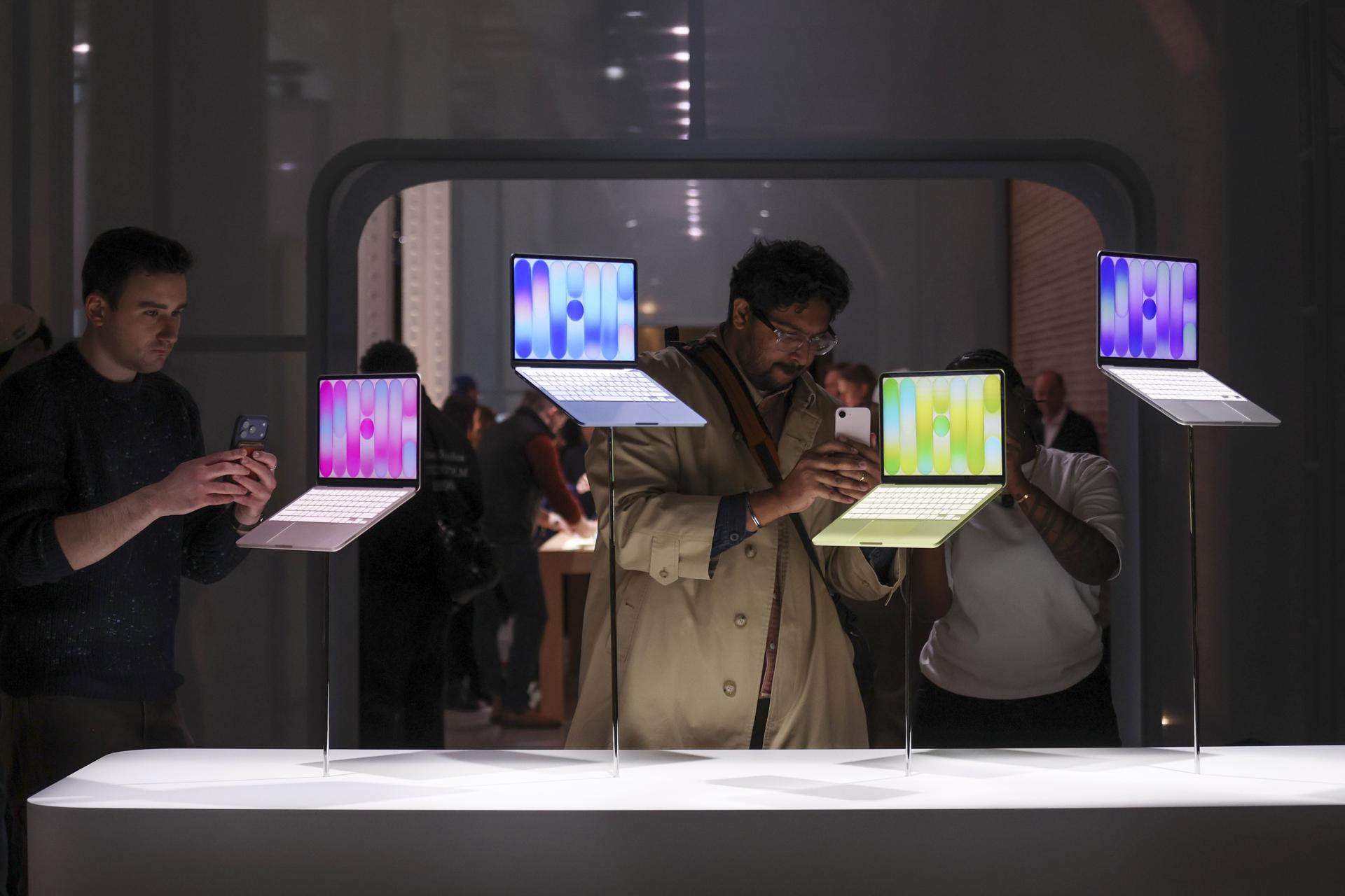 Personas toman fotografías de la MacBook Neo en la ‘Apple Experience’ en Nueva York este jueves. EFE/EPA/SARAH YENESEL