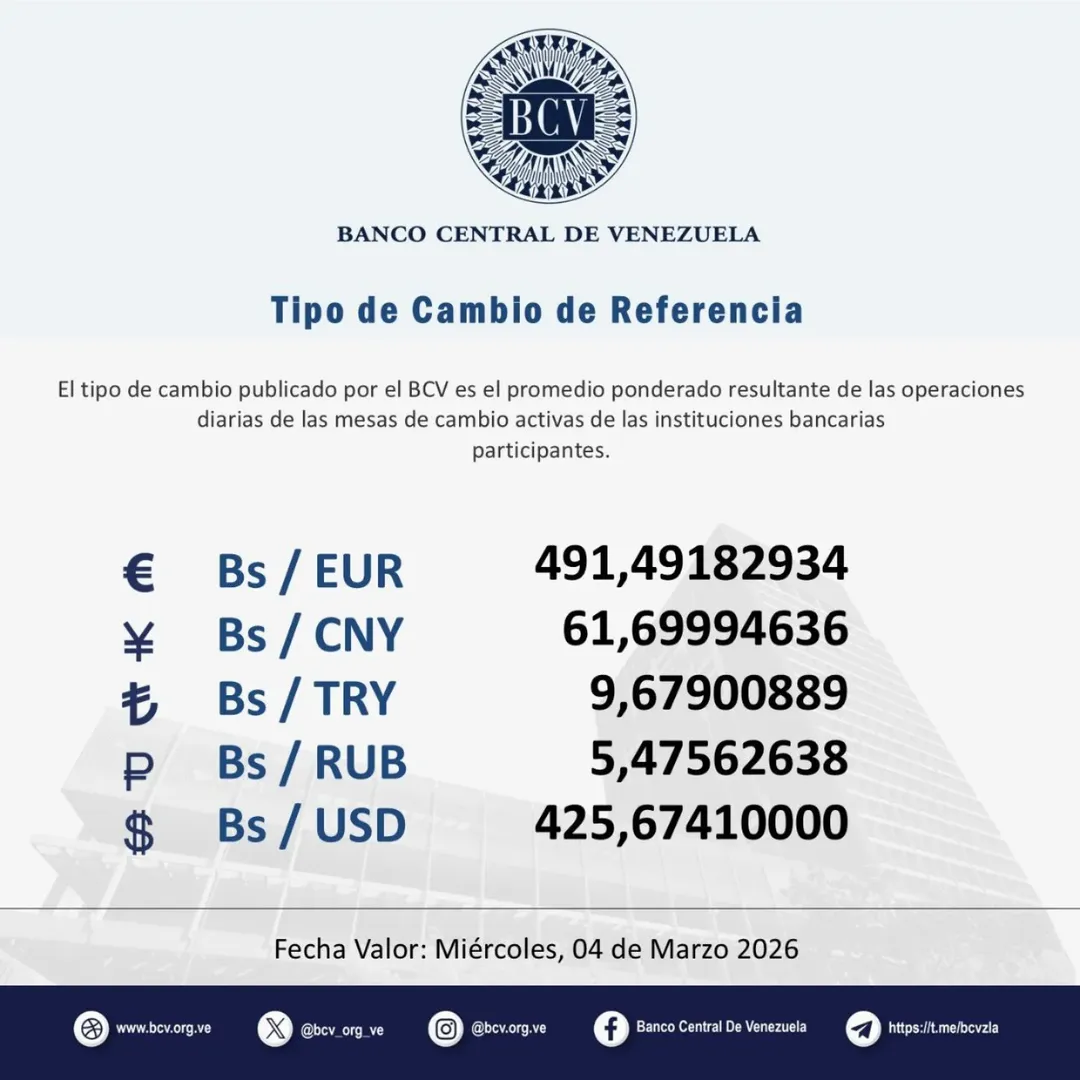 «El tipo de cambio publicado por el BCV es el promedio ponderado de las operaciones de las mesas de cambio de las instituciones bancarias», señaló el ente emisor.