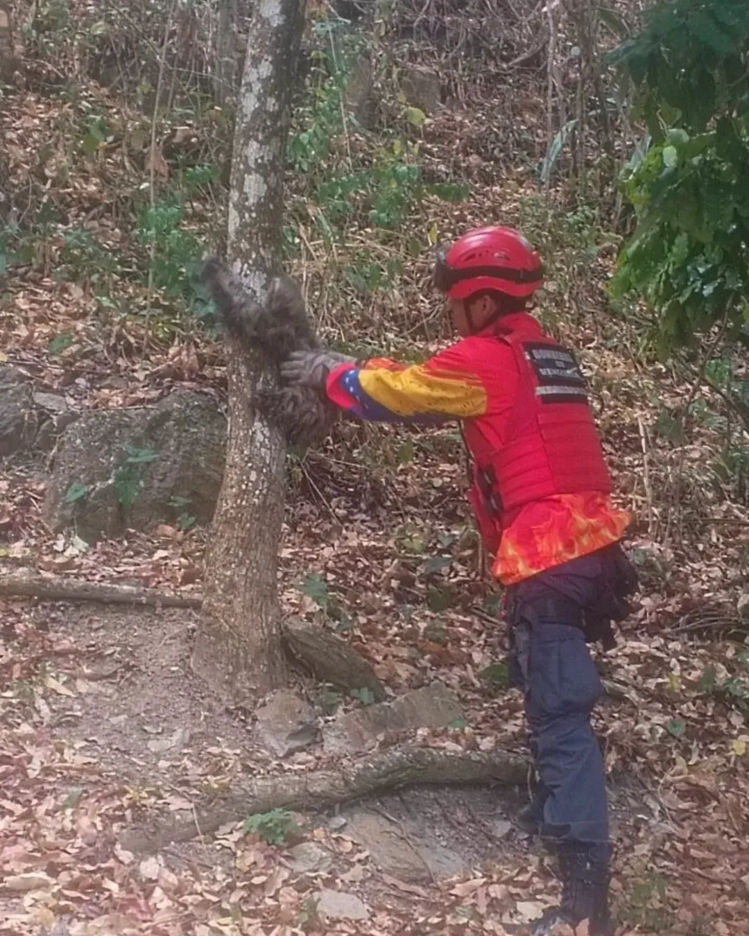 El comandante del Cuerpo de Bomberos de Caracas, Pablo Palacios, informó en sus redes sociales sobre el rescate de la pereza. Además, acompañó el reporte con varias fotografías del operativo.