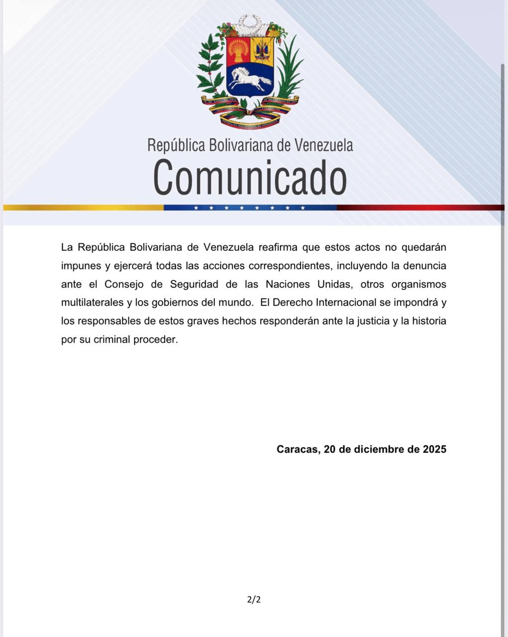 Por último, afirmaron que «estos actos no quedarán impunes» por lo que se reservó el derecho de ejercer «todas las acciones correspondientes, incluyendo la denuncia ante el Consejo de Seguridad de las Naciones Unidas, otros organismos multilaterales y los gobiernos del mundo».