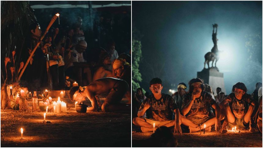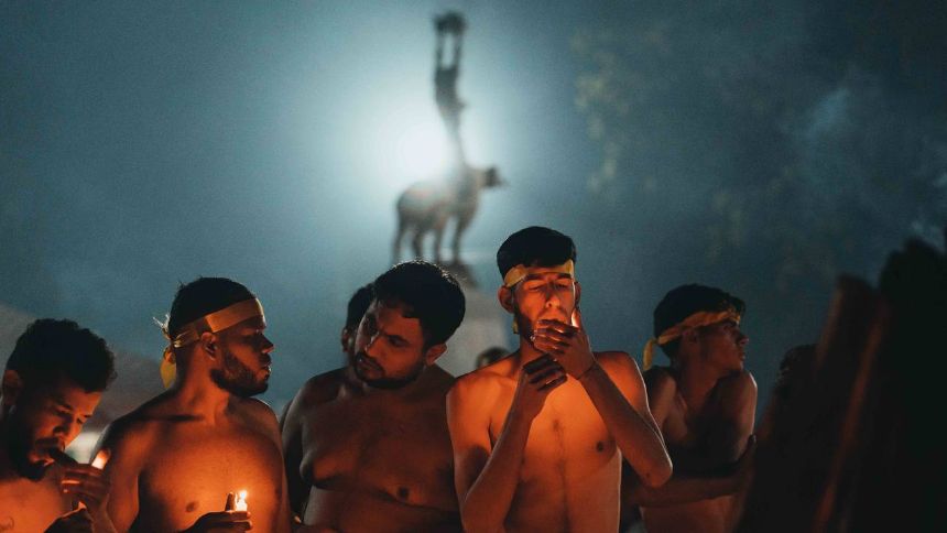 Alrededor, cientos de personas observan con curiosidad y asombro, mientras danzantes, materias y bancos se preparan para el ritual anual: bailar sobre brasas.